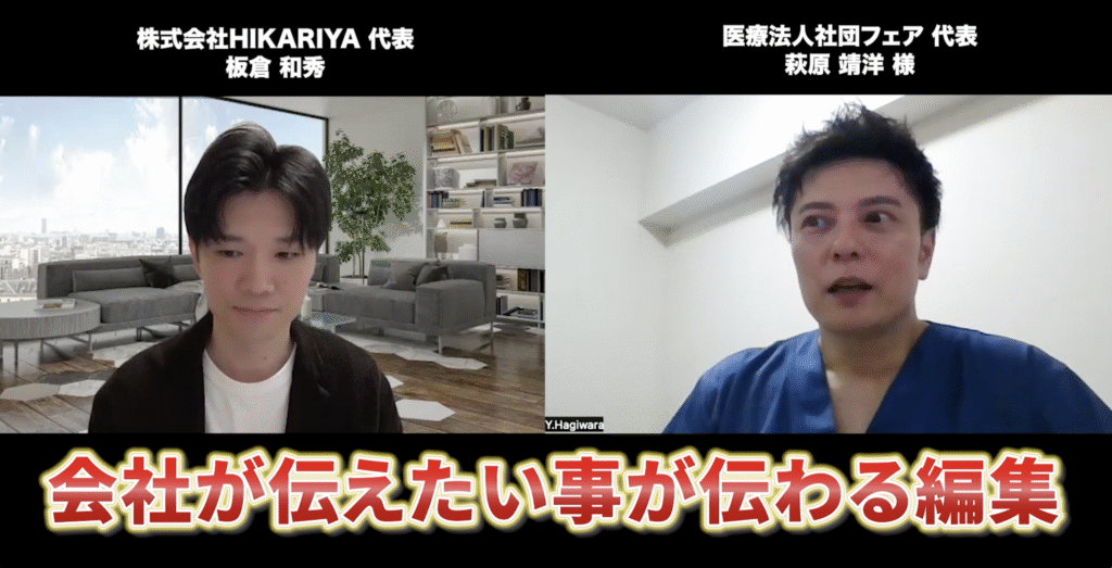 YouTube運用を検討する中で、医療法人社団フェア様は多くの動画制作会社に資料請求やヒアリングを実施されたそうです。その中で、ある会社さんの動画で気になる動画を目にすることがあり、その会社に直接、問い合わせたところ、HIKARIYAを紹介されたとか。